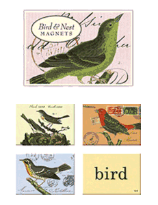 Twenty-four delightful bird and nest magnets featuring vintage prints from Paris and London.