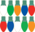 Ten Christmas light car magnets per pack, 2 each of red, yellow, green, white and blue. Each Christmas light car magnet measures approximately 3.5” H x 1.5" W.