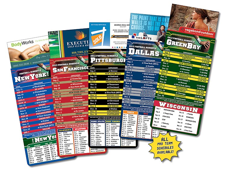 These football schedule magnets are available two ways: