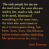 “The only people for me are the mad ones, the ones who are mad to live, mad to talk, mad to be saved, desirous of everything at the same time, the ones who never yawn or say a commonplace thing, but burn, burn, burn, like fabulous yellow roman candles exploding like spiders across the stars...” - Jack Kerouac