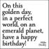 Quotable card reads On this golden day, in a perfect world, on and emerald planet, have a happy birthday! Mike Dooley