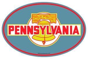 Retro Pennsylvania Liberty Bell travel decal style image updated on a new 5.75" x 3.75" oval car magnet from Fridgedoor.