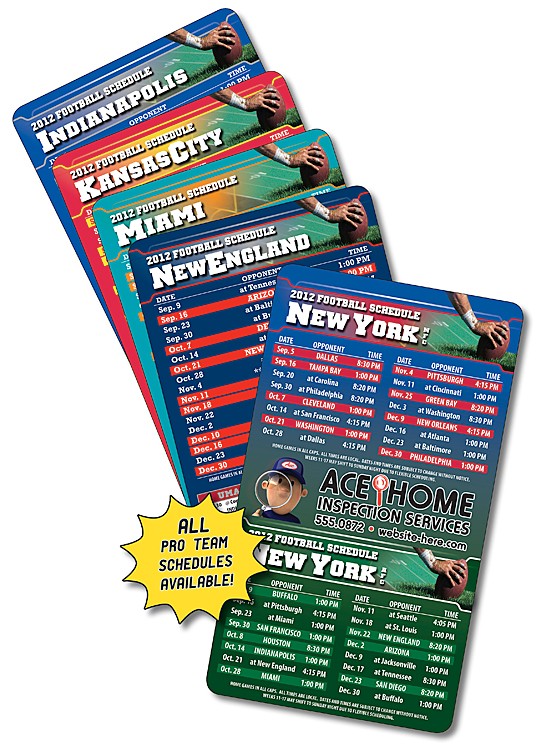 Custom Sports Schedule MagnetsFridgedoor offers all schedule magnets for all professional sports teams. These schedule magnets are available two ways: