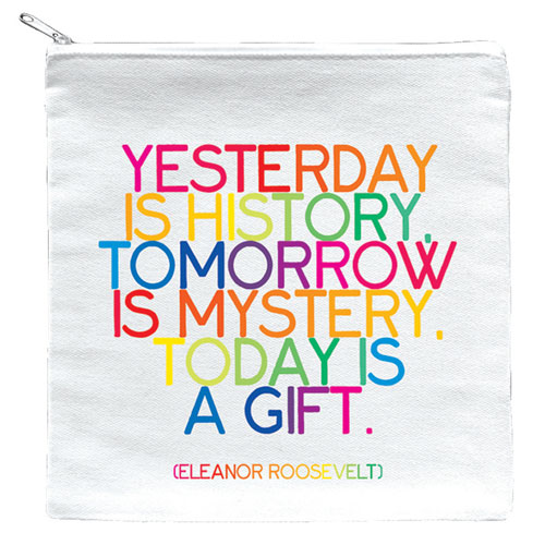 Today Is A Gift Quotable PouchYesterday is history. Tomorrow is a mystery. Today is a gift. - Eleanor Roosevelt.