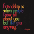 Quotable card reads “Friendship is when people know all about you but like you anyway.” - Anonymous